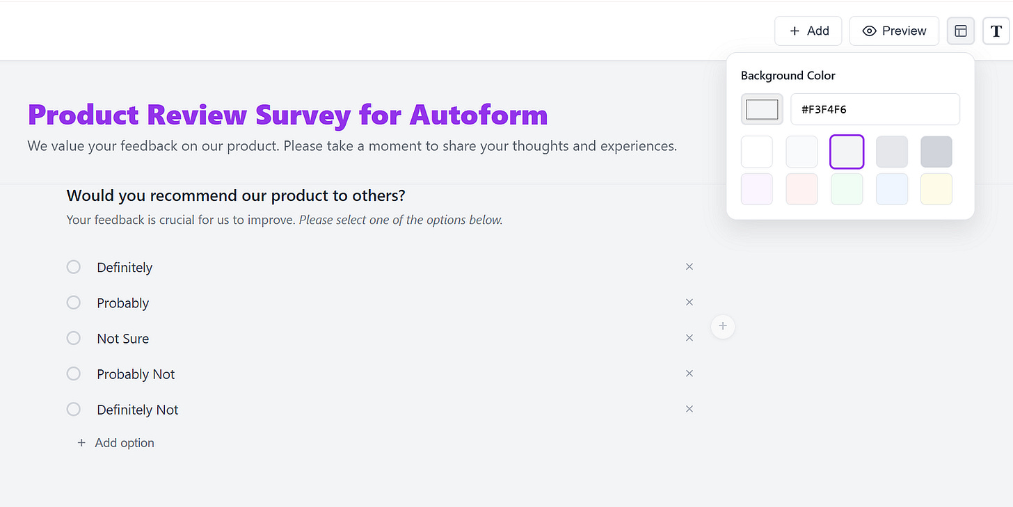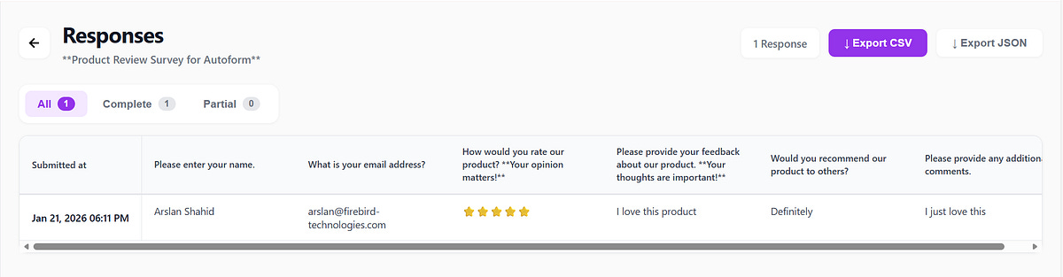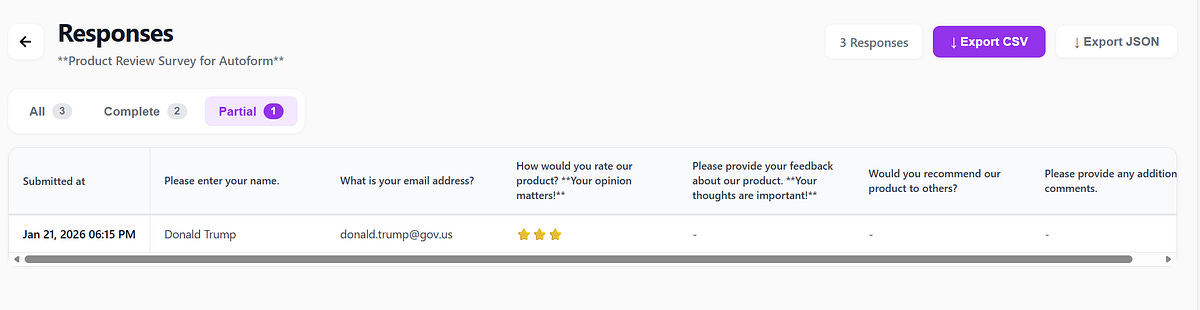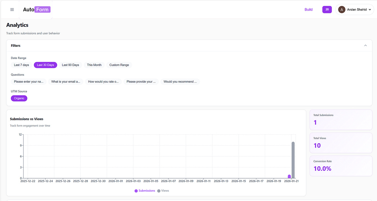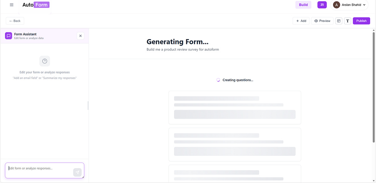 Autoform is designed with simplicity in mind. It takes you from creating -> analyzing your responses in minutes. AI is not just a feature but the entire product!