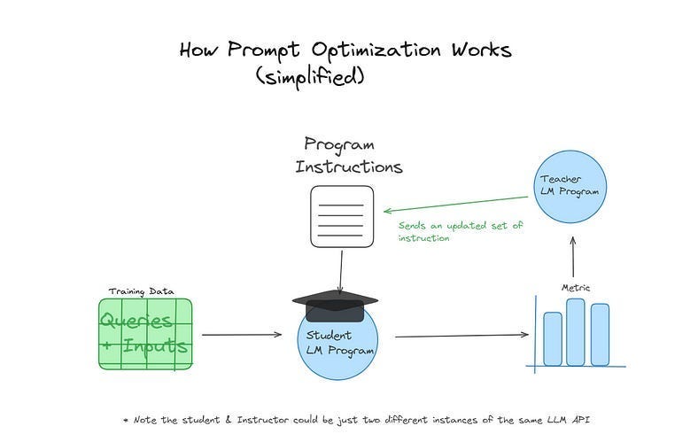 Once, you have the metric you can score your LLM program outputs, and measure them against your expected outputs. You can then generate new instructions for your program and measure them. Iterating this would give you better or optimized instructions. There are many algorithms in prompt optimization, you can use DSPy to automate these pipelines for you.
