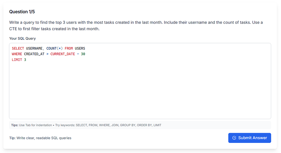 A few weeks back we shared our idea for an AI powered SQL trainer and asked people to fill out a short form if they were interested. The responses made it clear that most bootcamps are charging way too much just to teach SQL and basic analytics. That is why I am excited to share that SQLTrainerAI is now live in beta, the first step toward making analytics learning accessible online with an AI powered instructor.